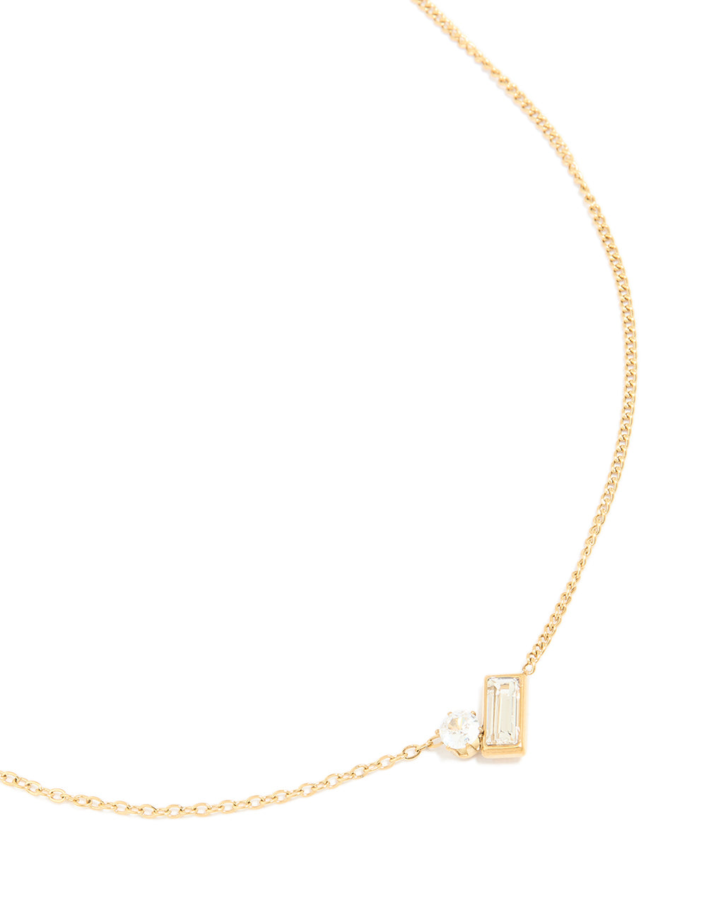 Elevate your everyday style with this Waterproof Gold Plated Stainless Steel Cubic Zirconia Baguette & Round Pendant Necklace. This stunning necklace combines a sleek baguette-shaped cubic zirconia crystal with a perfectly round cubic zirconia crystal for a timeless yet modern look. Crafted from durable stainless steel and finished with luxurious gold plating, it’s not just chic but also waterproof—so you can sweat, swim or shower without a care. Perfect for both casual outings and dressy occasions, this necklace adds effortless sparkle to any outfit. Pair it with a flowy dress, a tailored suit, or your favourite jeans and tee for a polished finish.