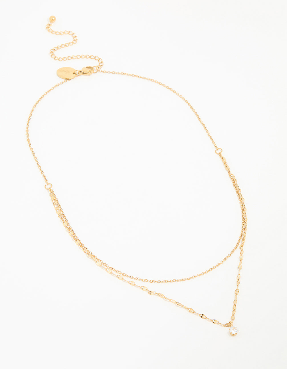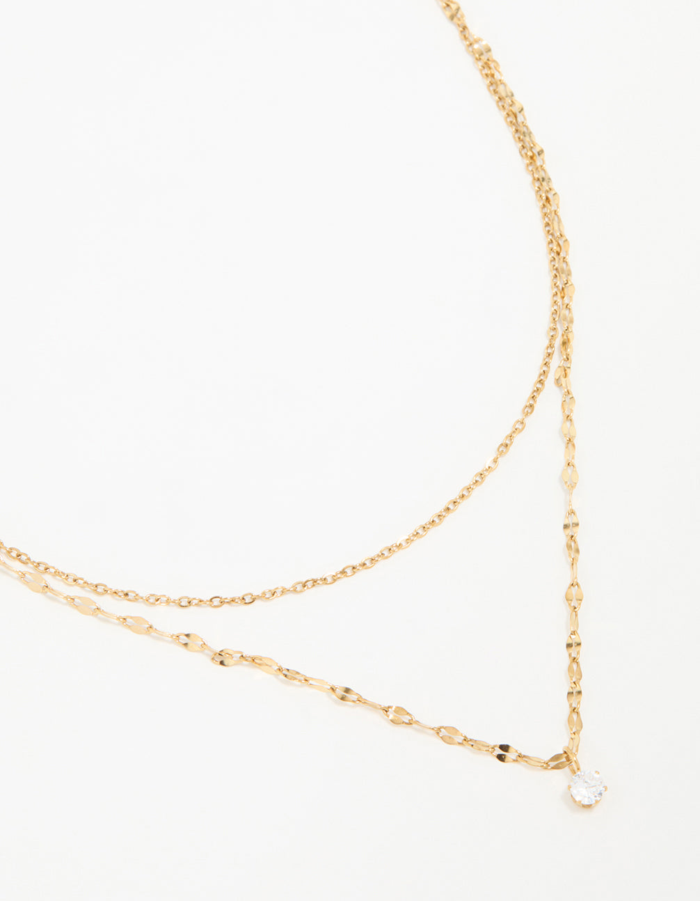 Waterproof Gold Plated Stainless Steel Cubic Zirconia Dainty Layered Necklace