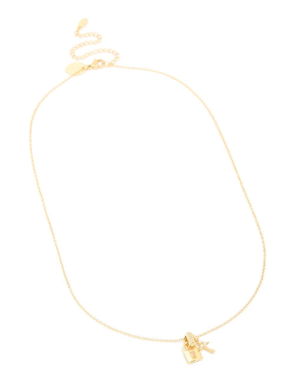 Waterproof Gold Plated Stainless Steel Cubic Zirconia Lock & Key Necklace