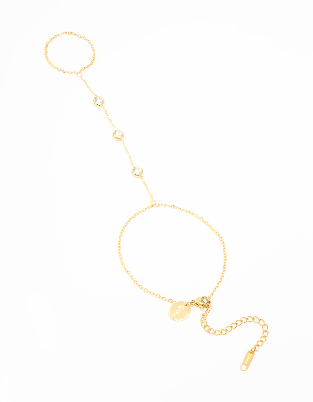Add a touch of boho elegance to your look with this Waterproof Gold Plated Stainless Steel Diamante Bezel Hand Chain. This dainty yet eye-catching jewellery piece features sparkling diamantes set in bezel designs, all plated in luxurious gold for a timeless finish. Perfect for festivals, beach days, or adding flair to your everyday style, this hand chain sits gracefully across your wrist and fingers, creating a chic, layered jewellery effect. Pair it with flowy dresses, stacked rings, or even a simple jeans-and-tee combo for effortless boho vibes. Designed to be waterproof and durable, this hand chain is as practical as it is stylish—ideal for those who want beauty and functionality in one.