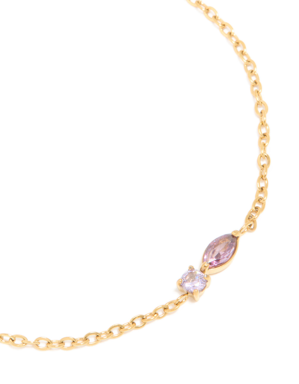 Waterproof Gold Plated Stainless Steel February Purple Cubic Zirconia Birthstone Bracelet