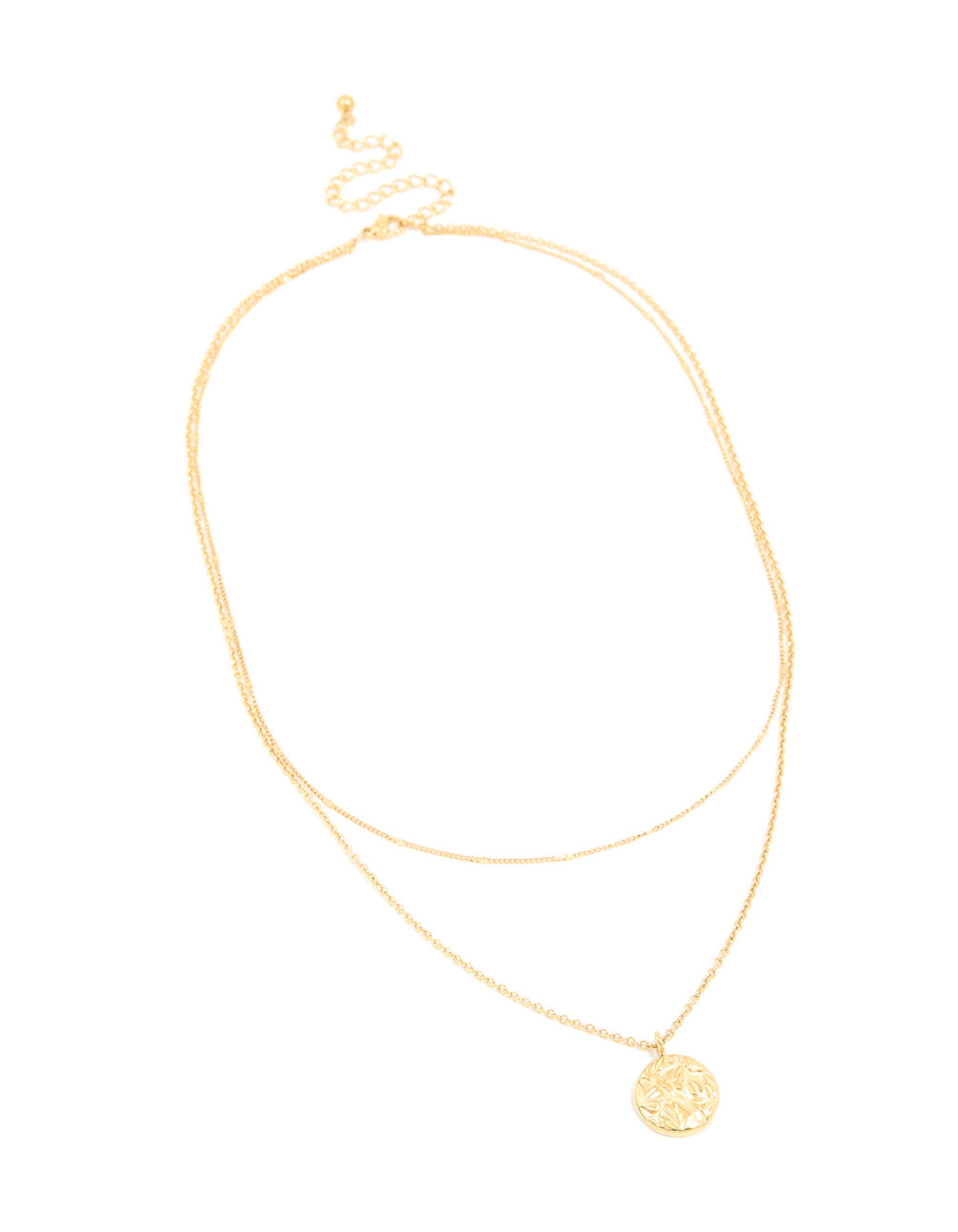 Waterproof Gold Plated Stainless Steel Fine Chain & Disc Pendant Layered Necklace