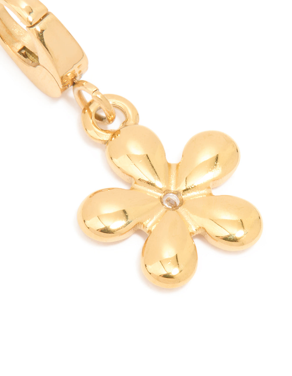Make your jewellery collection bloom with this Waterproof Gold Plated Stainless Steel Flower Diamante Charm. This stunning charm features a delicate flower design and sparkling diamante accents, combining timeless elegance with a youthful, playful edge. Crafted from durable stainless steel and finished with luxurious gold plating, it's both stylish and practical, perfect for everyday wear or special occasions. Its waterproof design means you can wear it anywhere, whether you're heading to a beach day, a brunch, or just adding a touch of glamour to your daily outfit. Pair this charm with a sleek chain or mix it with other pendants for a personalised look. Whether you're dressing up or keeping it casual, this versatile piece brings effortless charm to any style!