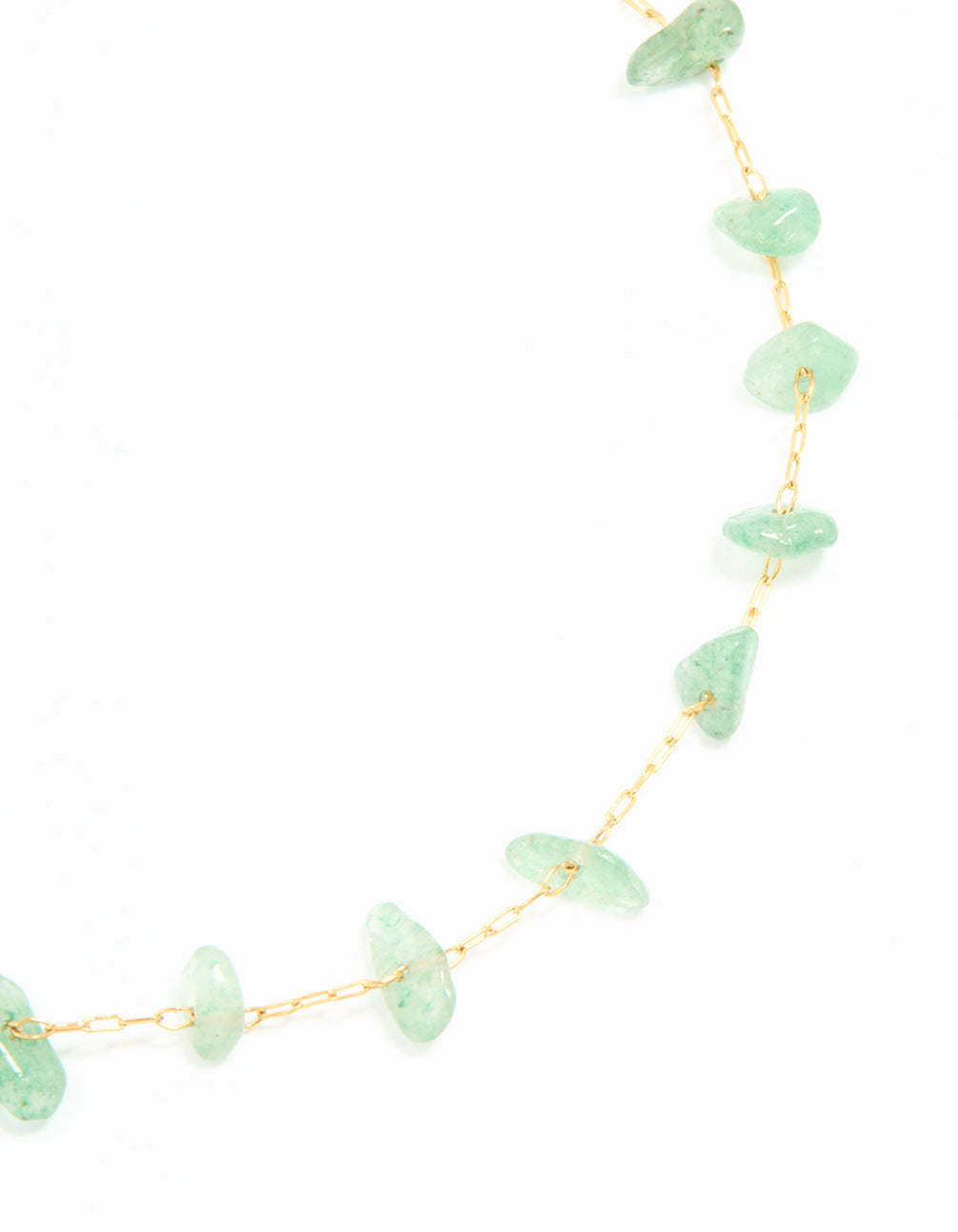 Add a pop of elegance to your look with this Waterproof Gold Plated Stainless Steel Green Semiprecious Stone Anklet. This anklet combines durable stainless steel with a luxurious gold plating, making it not just stylish but practical too—perfect for sweat, swim, and shower-proof wear! The delicate green semiprecious stones bring a fresh, earthy charm to the design, adding a subtle splash of colour that works for both casual and dressy occasions. Whether you're heading to the beach, a summer picnic, or a night out, this anklet is the perfect finishing touch. Pair it with sandals for a breezy vibe or layer it with other anklets for a playful, boho-inspired look. Designed to keep up with your adventures, it's the ultimate mix of beauty and durability!