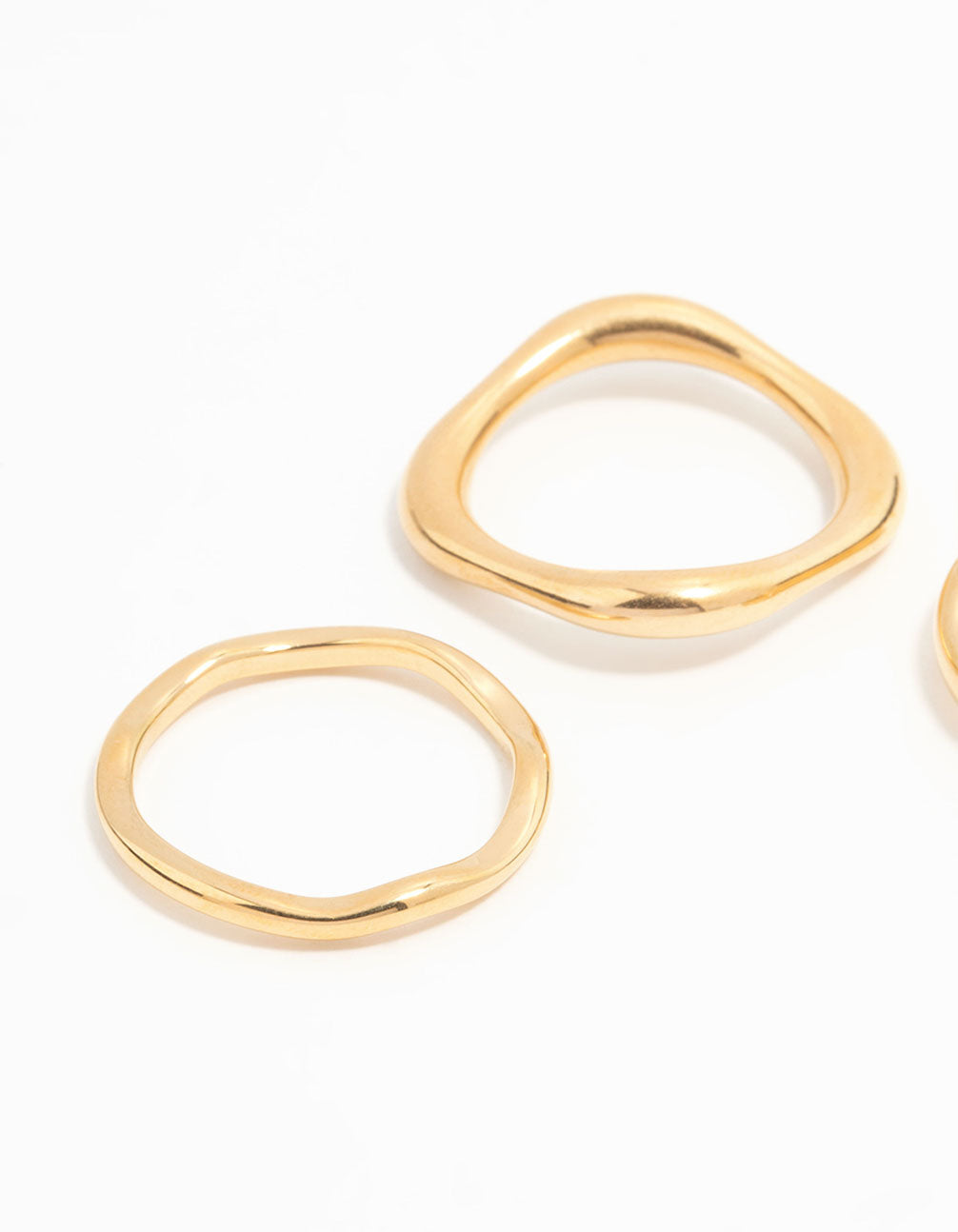 Waterproof Gold Plated Stainless Steel Organic Rings 3-Pack