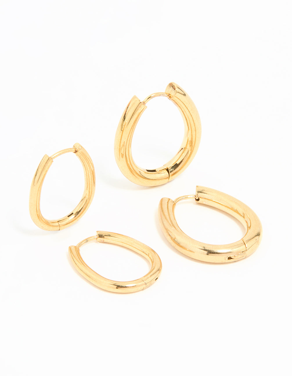 Waterproof Gold Plated Stainless Steel Oval Tube Hoop Earrings 2-Pack