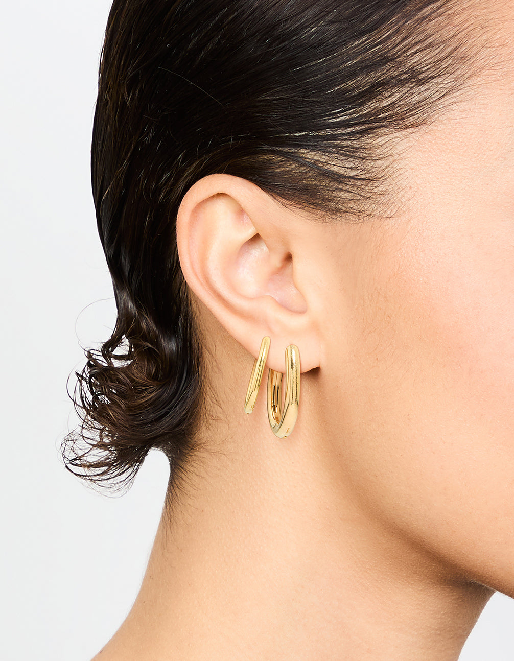 Dive into style with our Waterproof Gold Plated Stainless Steel Oval Tube Hoop Earrings Pack! This set features two pairs of unique oval tube designed hoops, perfect for making a subtle statement. Crafted using gold plated stainless steel for waterproof and adventure proof wear.