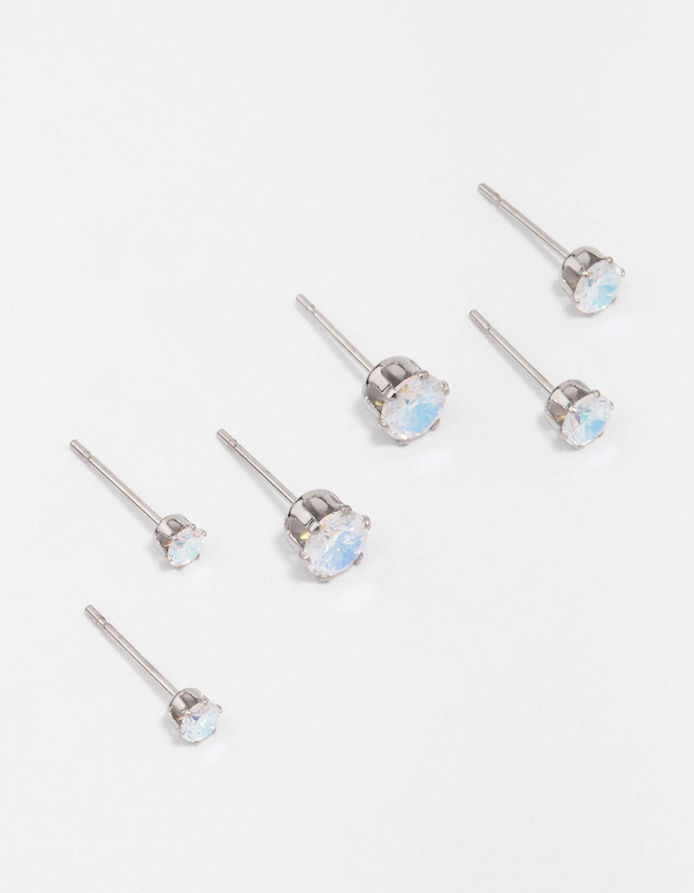 Waterproof Stainless Steel Cubic Zirconia Stud Earring 3-Pack