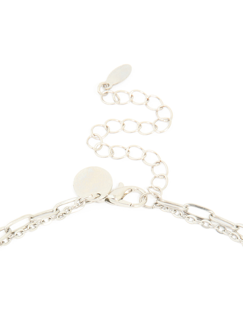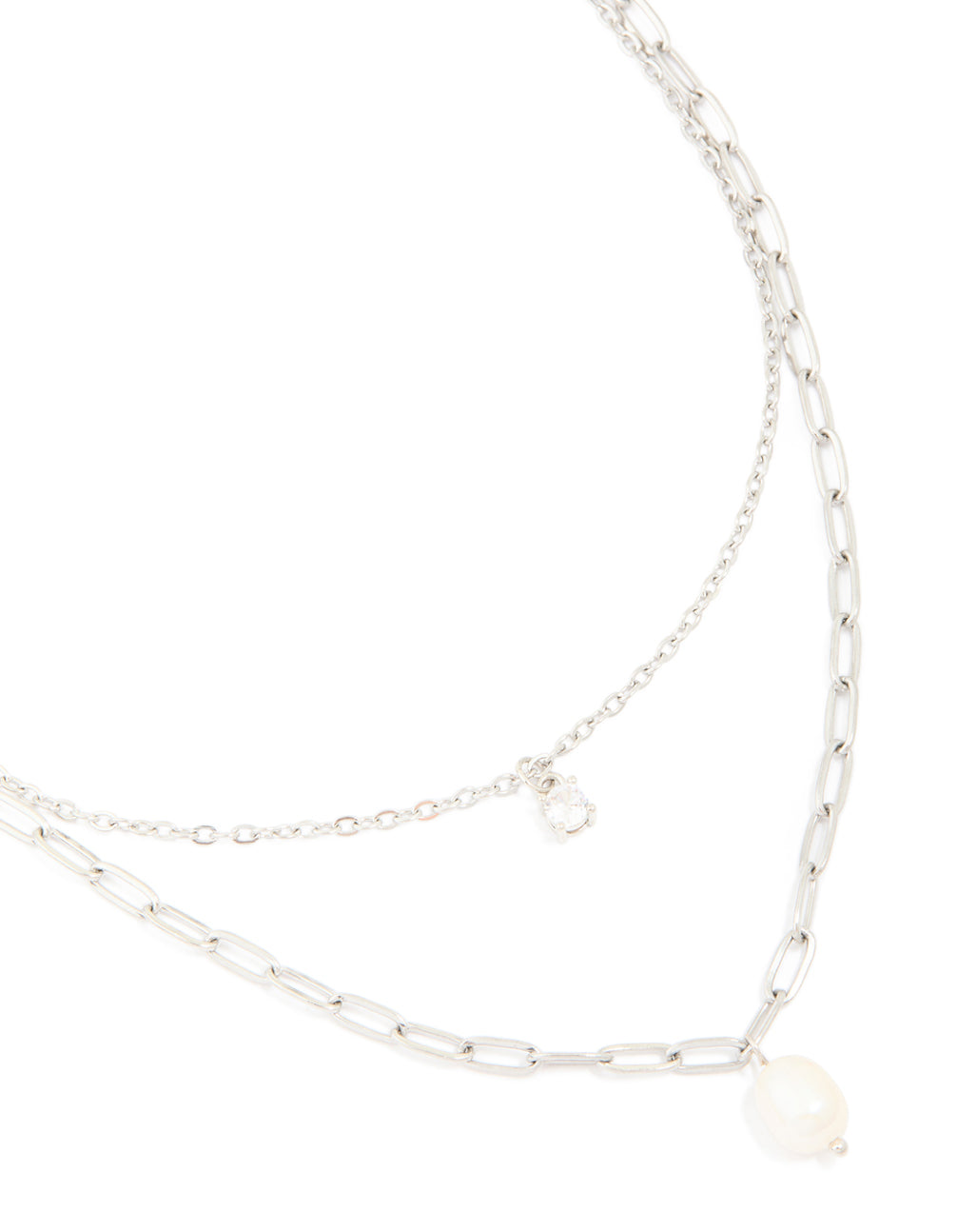 Waterproof Stainless Steel Diamante & Freshwater Pearl Chain Layered Necklace