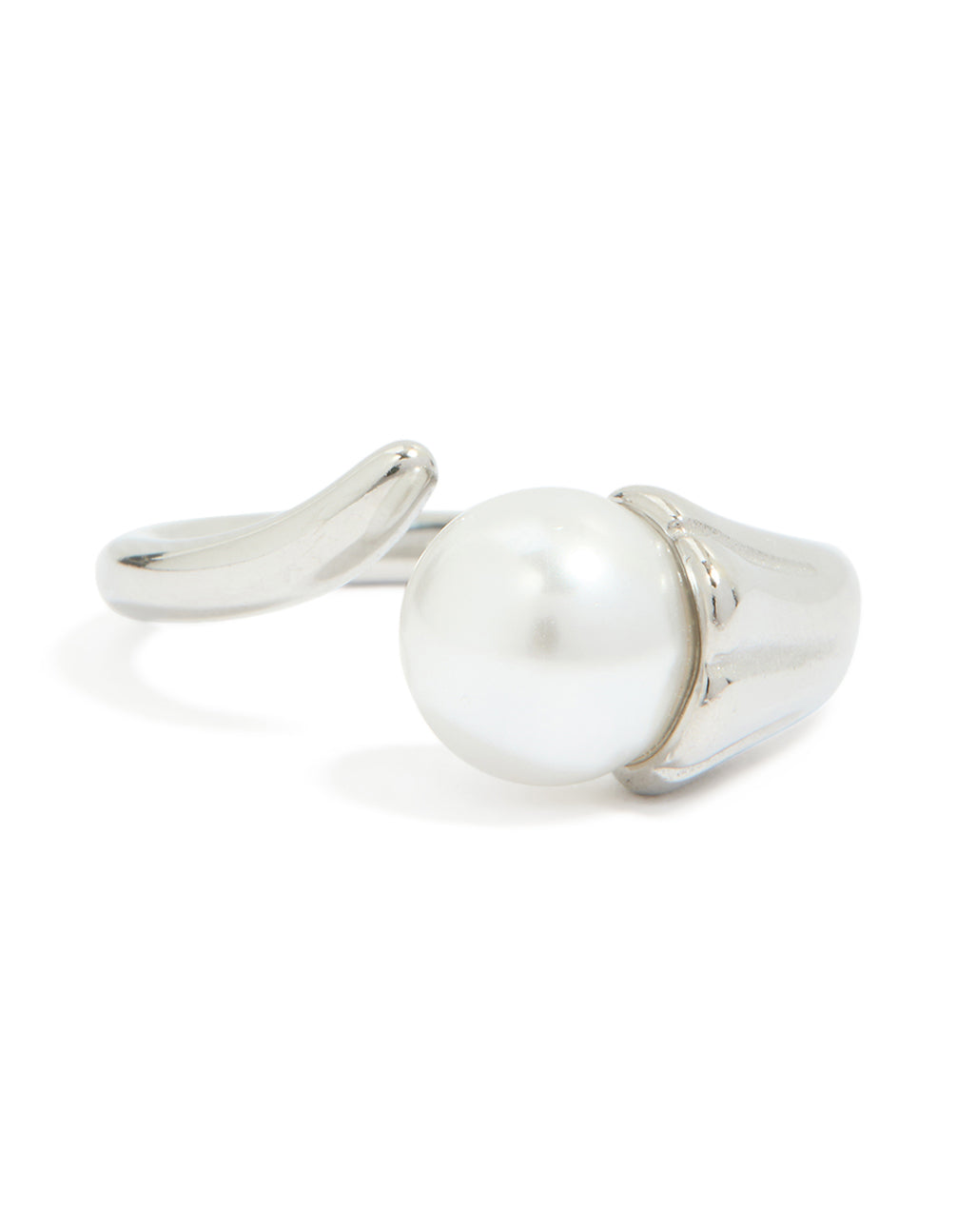 Waterproof Stainless Steel Pearl Open Wrap Around Ring
