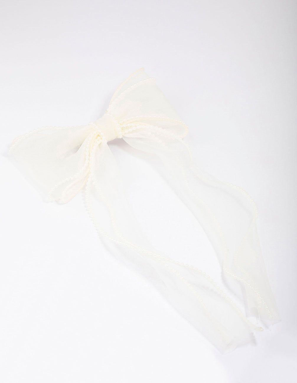 Bows are trending! Add an elegant and on-trend finish to your outfit with this white, organza hair bow.