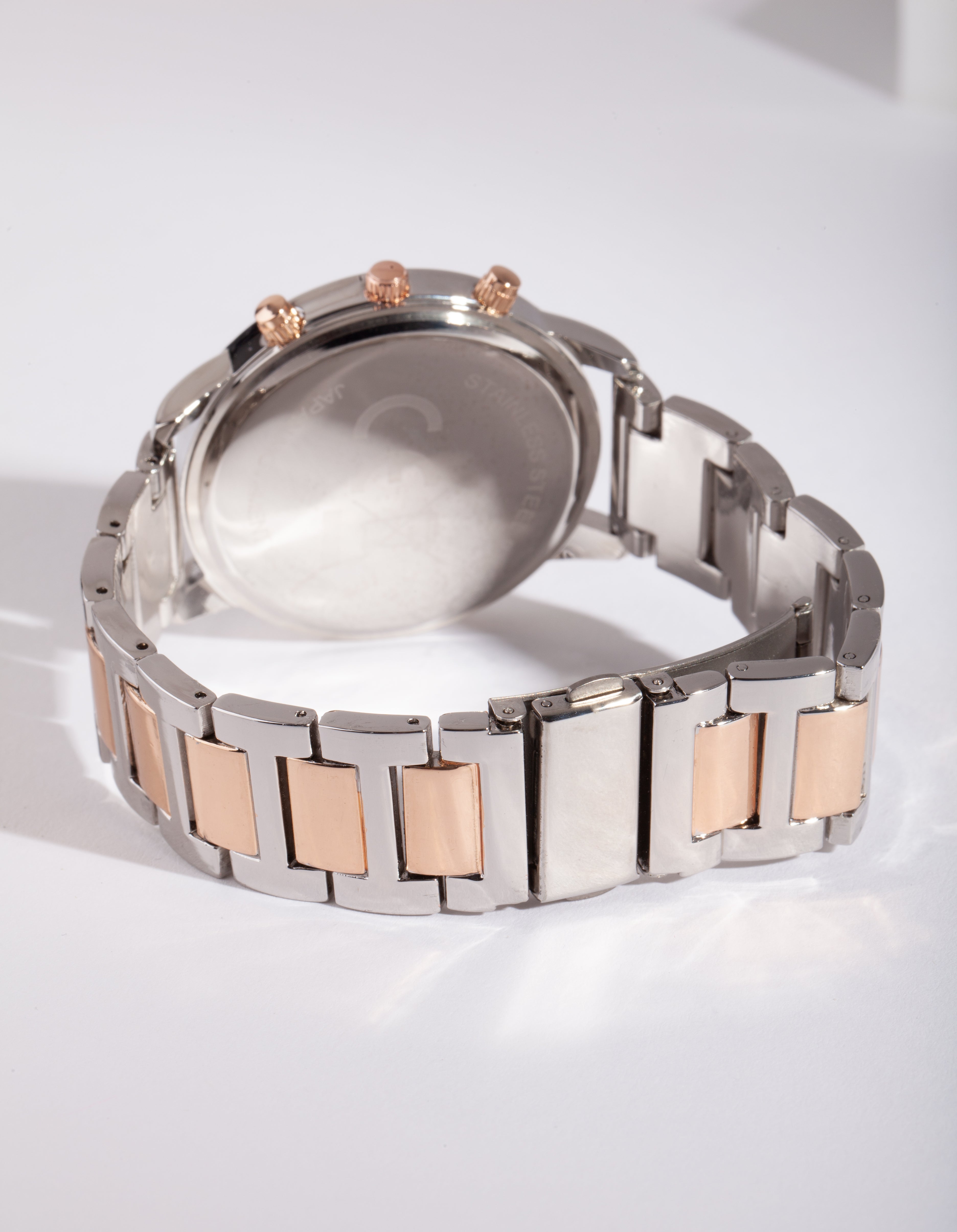 Style this gold and silver, two-toned diamante watch and add a hint of glamour to your outfit.
