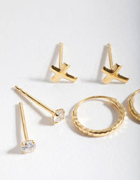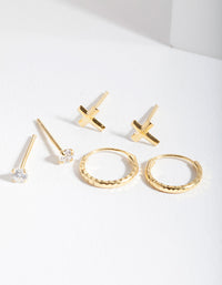 Gold Plated Sterling Silver Cubic Zirconia Cross Earring Pack