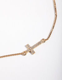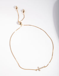 Gold plated sterling silver styles are the ultimate jewellery-box essential. Dress up your look with this stunning cubic zirconia embellished cross toggle bracelet.