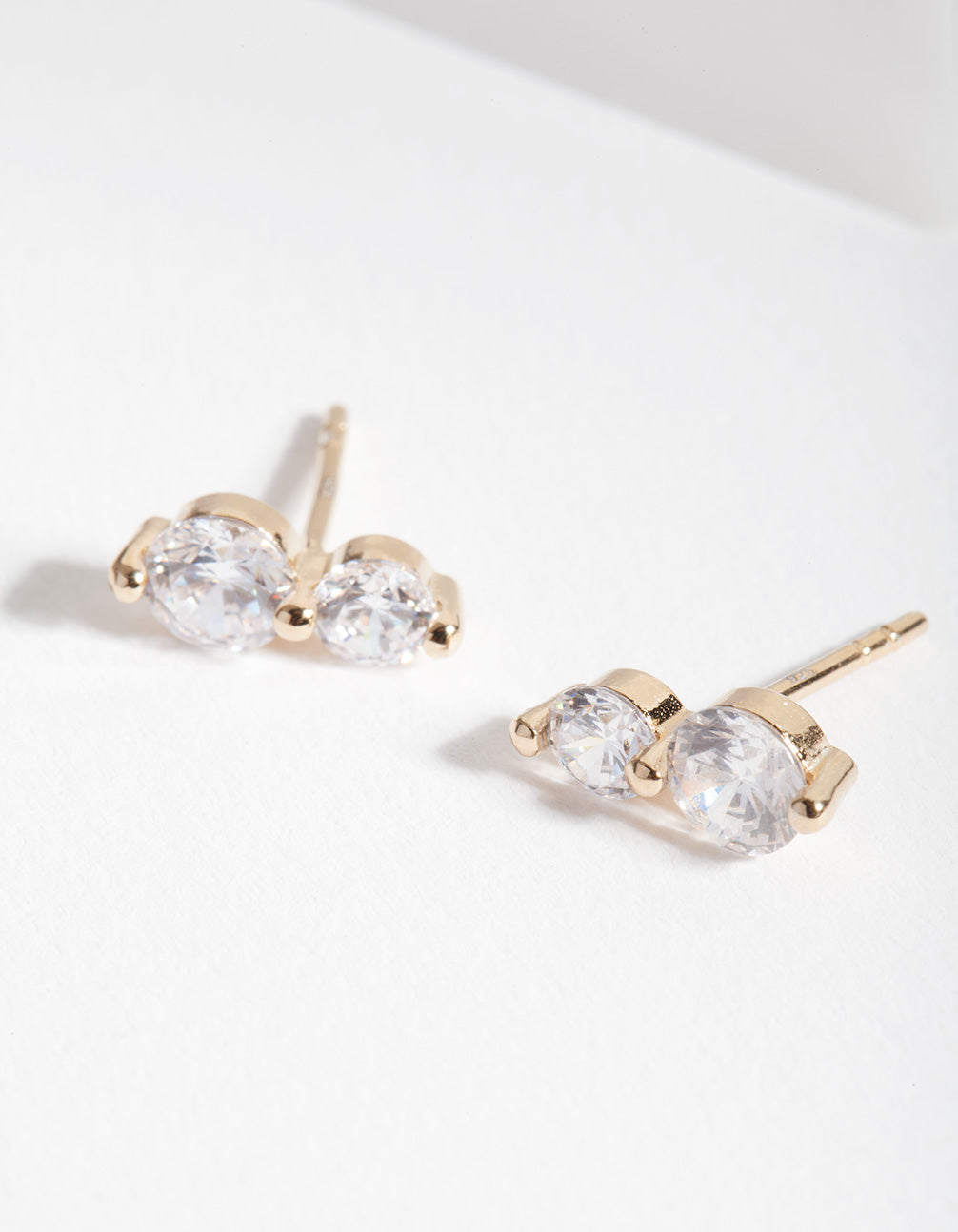 Gold plated sterling silver jewellery is the perfect way to add some everyday style to your collection. This pair of studs boast a double cubic zirconia embellished design.